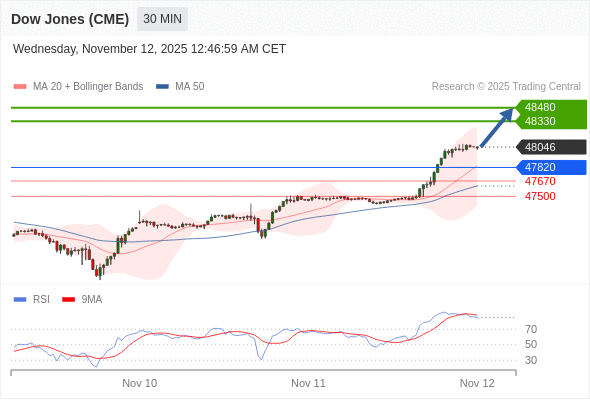 在 47820 之上,看涨,目标价位为 48330 ,然后为 48480 。