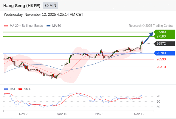 在 26700 之上,看涨,目标价位为 27180 ,然后为 27300 。
