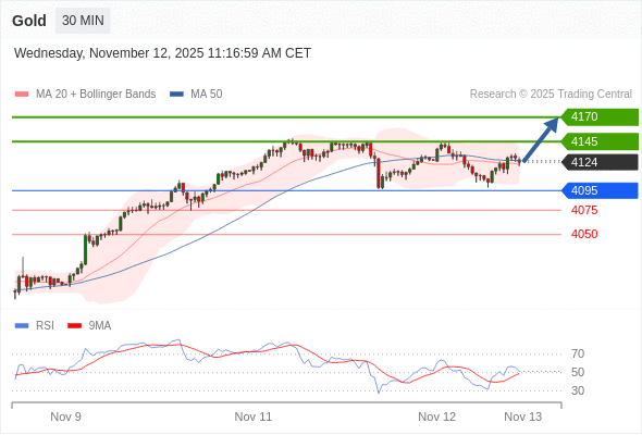 在 4145 之下,看跌,目标价位为 4095 ,然后为 4075 。