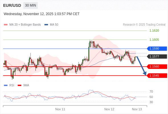 交易策略: 在 1.1590 之下,看跌,目标价位为 1.1560 ,然后为 1.1545 。