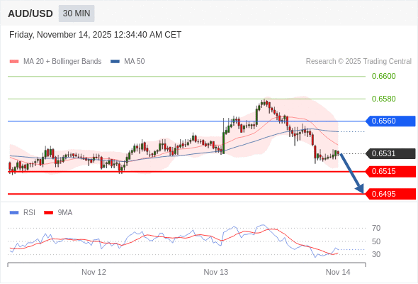 在 0.6560 之下,看跌,目标价位为 0.6515 ,然后为 0.6495 。