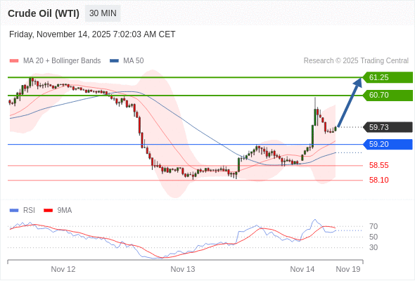 在 59.20 之上,看涨,目标价位为 60.70 ,然后为 61.25 。
