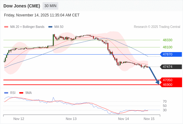 在 47870 之下,看跌,目标价位为 47050 ,然后为 46900 。