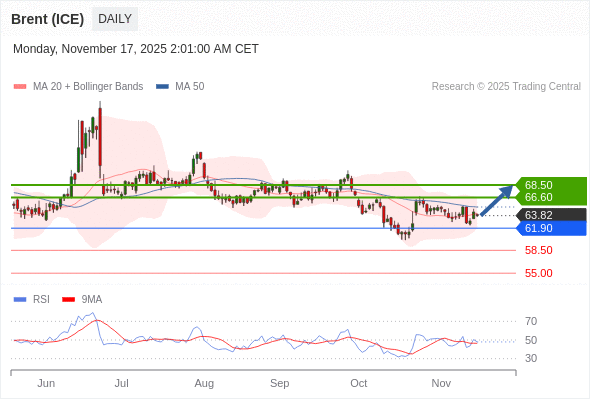 在 61.90 之上,看涨,目标价位为 66.60 ,然后为 68.50 。