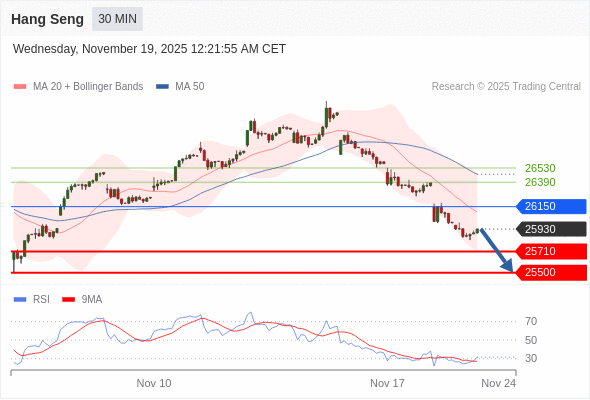 在 26150 之下,看跌,目标价位为 25710 ,然后为 25500 。
