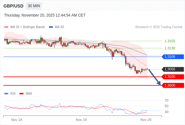 交易策略: 在 1.3100 之下,看跌,目标价位为 1.3030 ,然后为 1.3000 。