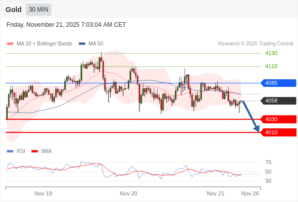 在 4085 之下,看跌,目标价位为 4030 ,然后为 4010 。
