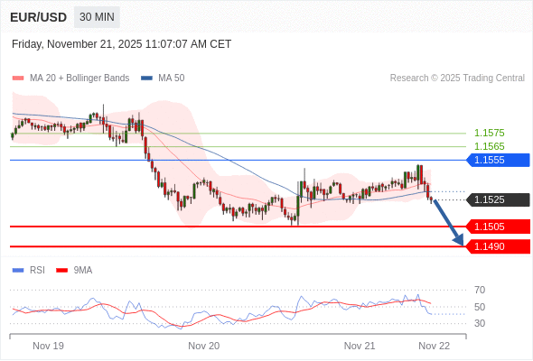 在 1.1555 之下,看跌,目标价位为 1.1505 ,然后为 1.1490 。