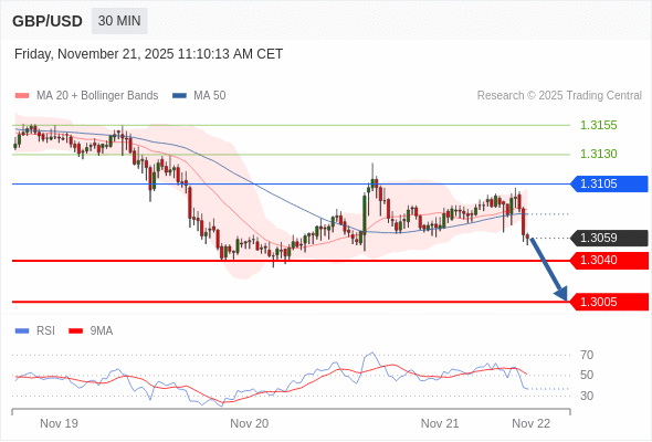 在 1.3105 之下,看跌,目标价位为 1.3040 ,然后为 1.3005 。
