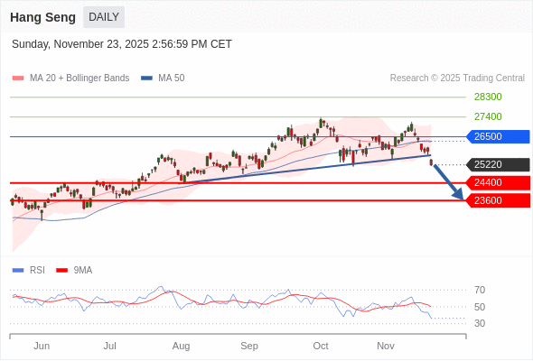 交易策略: 在 26500 之下,看跌,目标价位为 24400 ,然后为 23600 。