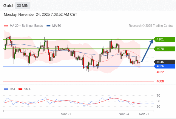 在 4036 之上,看涨,目标价位为 4078 ,然后为 4101 。