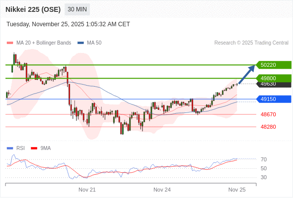 在 49150 之上,看涨,目标价位为 49800 ,然后为 50220 。