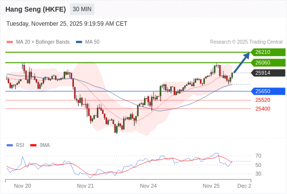 在 25650 之上,看涨,目标价位为 26060 ,然后为 26210 。