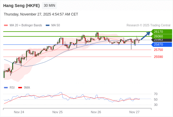 在 25870 之上,看涨,目标价位为 26060 ,然后为 26170 。