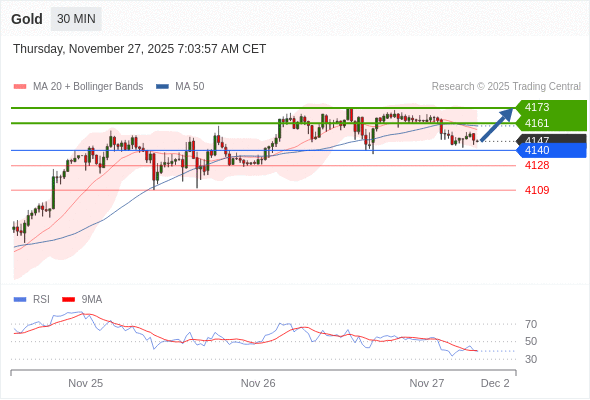 在 4140 之上,看涨,目标价位为 4161 ,然后为 4173 。