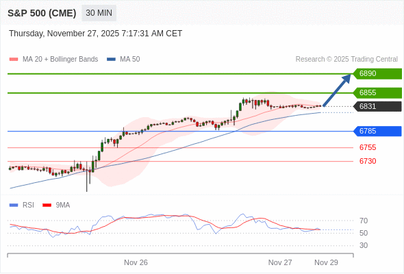 在 6785 之上,看涨,目标价位为 6855 ,然后为 6890 。