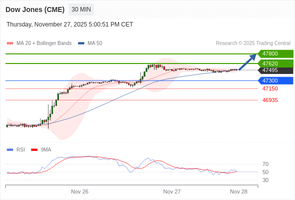 在 47300 之上,看涨,目标价位为 47620 ,然后为 47800 。