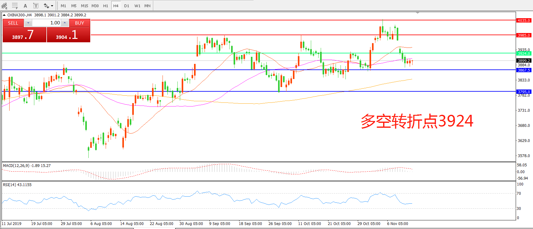 沪深300指数CHINA300 4小时图