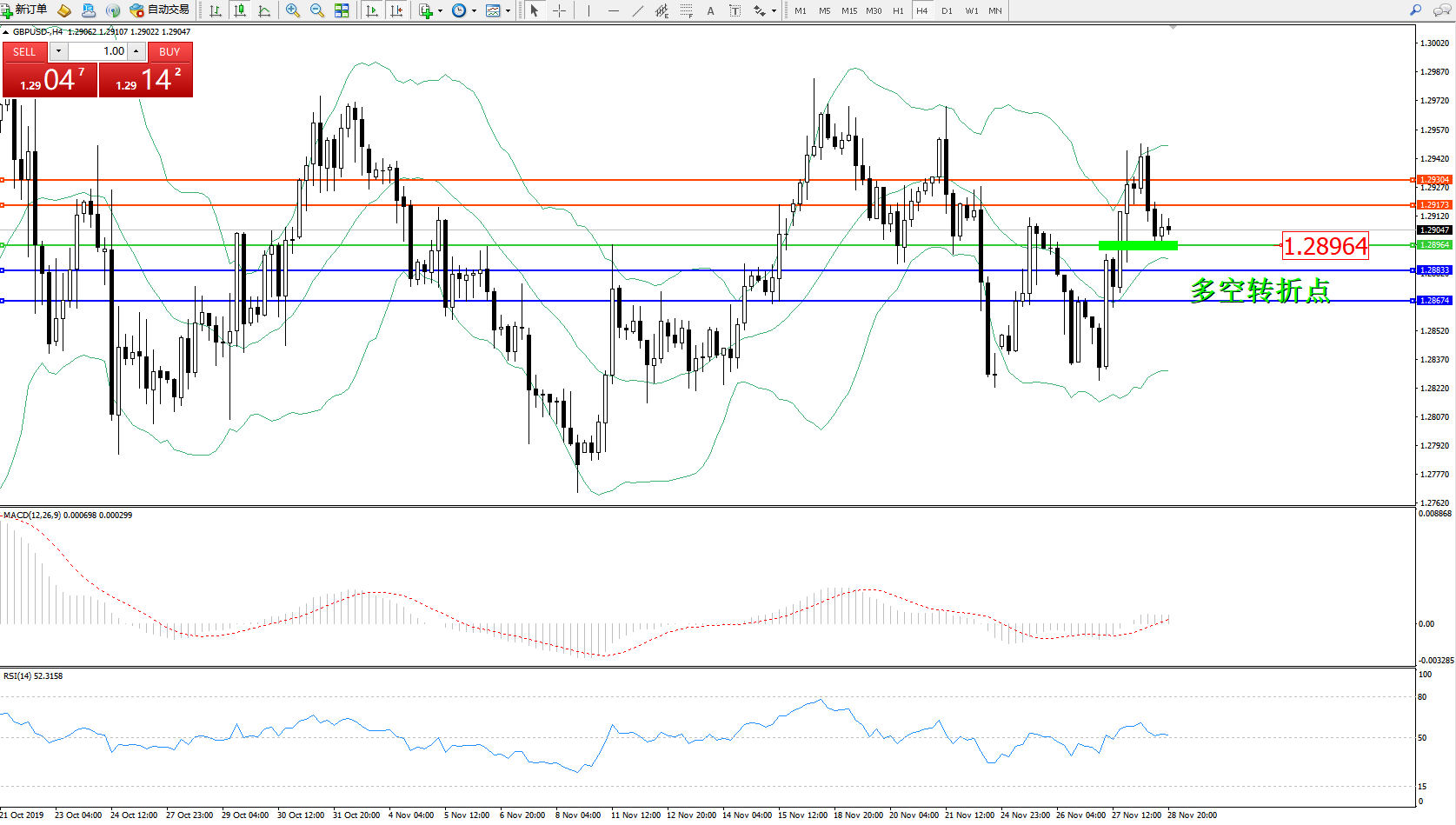 交易策略:1.28964上方看涨,目标1.291731.29304