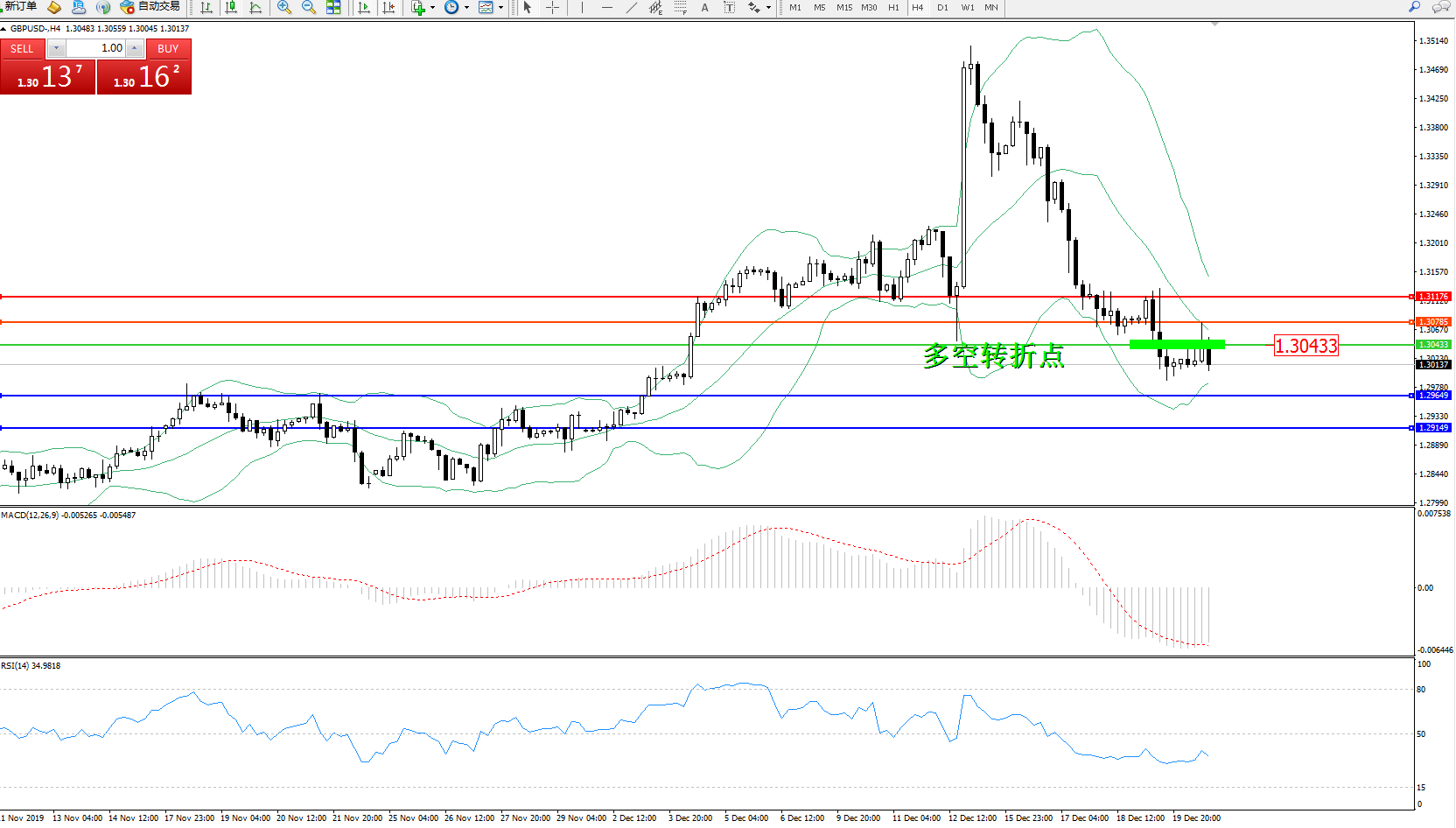 交易策略:1.30433下方看跌,目标1.296491.29149