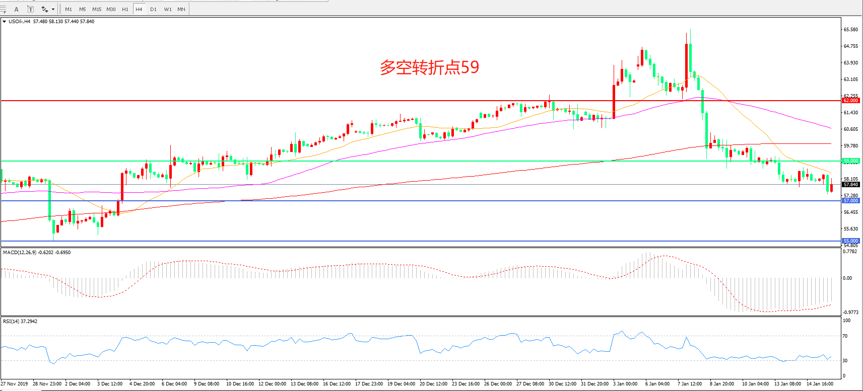 交易策略: 在59.00之下看跌,目标57.00 55.00