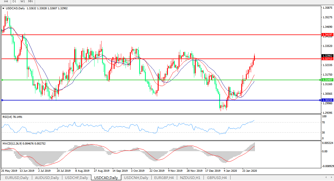 美元兑加元周一(2月3日)创下去年12月9日以来新高至1.3255,但随着油价企稳反弹,汇价上行势头遇阻;有报道称,OPEC+正计划进一步减产50万桶/日,以便平衡供求关系;不过,受欧系货币大跌提振,美指大幅反弹,料继续压制加元;日内稍后将公布美国1月份ISM制造业PMI数据;道明证券分析师表示:“我们预计,在第一阶段贸易协议签署后,市场积极情绪回升,1月份ISM指数将有所回升。”