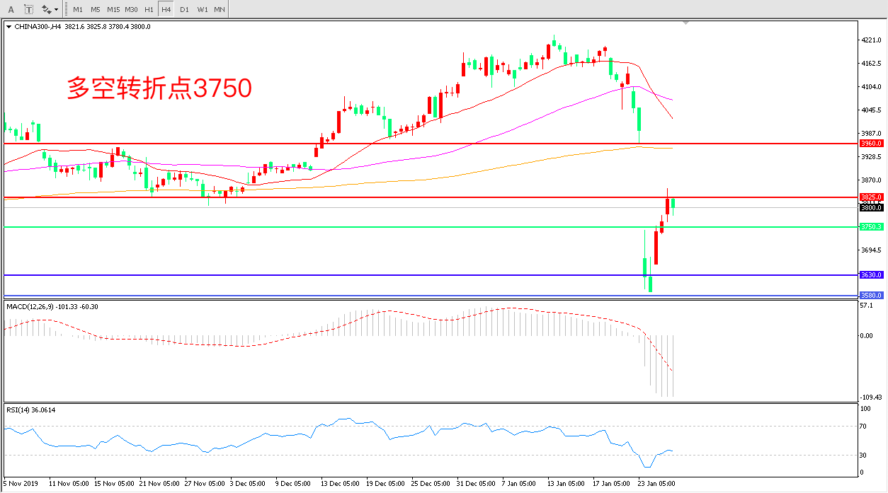 备选策略:在3750之下看跌,目标3630.00 3580.00