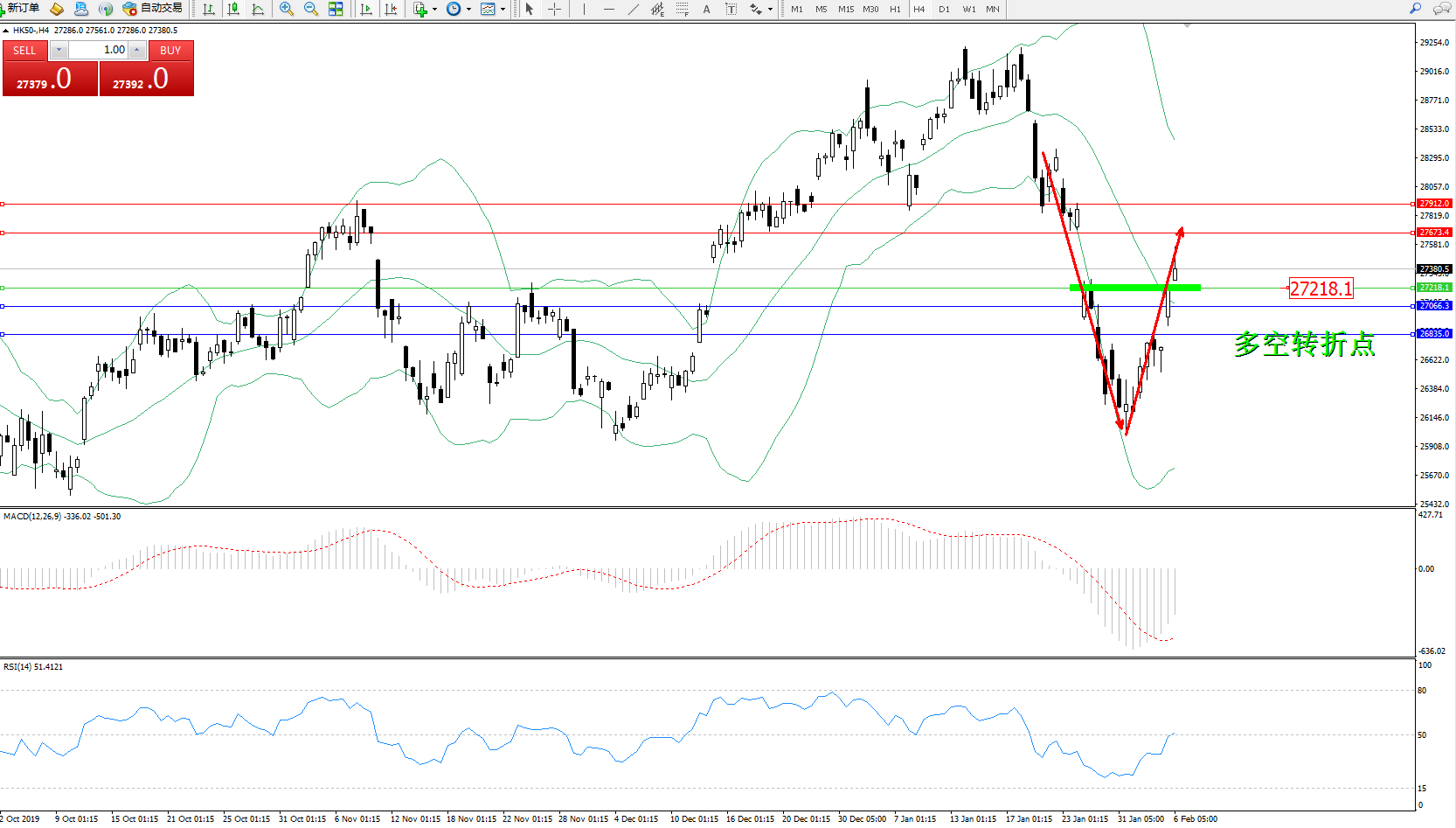 香港恒生指数2月6日(周四)收盘上涨706.96点,涨幅2.64%,报27493.70点;航空股、石油股集体爆发 东航、南航皆大涨超7%,截至今日收盘,恒指大市成交额报1317.26亿港元(上一交易日成交额为1337.8亿港元)。午间国务院关税税则委员会决定,对原产于美国约750亿美元进口商品的加征关税减半。肺炎药物进展提振情绪,加之中美贸易持续缓和。市场应声上涨,南下资金持续涌入,推升主要股指大幅反弹上涨。随着疫情得到有效抑制,同时有托底政策持续加码,再叠加外资、银行理财、保险养老金等中长期资金持续流入,市场将很快重新进入上行轨道。