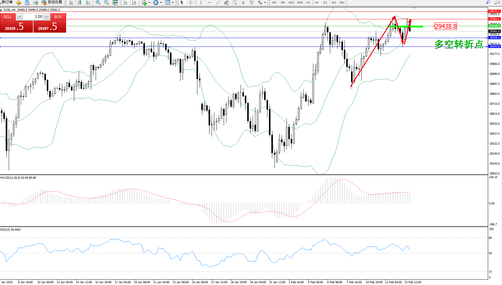道琼斯指数2月13日(周四)收盘下跌128.20点,跌幅0.43%,报29423.24点。此前全球公共卫生事件的有关报道,引发了人们重新担忧疫情给全球经济造成的影响,市场资金有再度逃离股市迹象,美国1月未季调CPI年率高于预期,美国1月基本消费价格上涨;因家庭在租金和服装上支出增加,这一现象支持美联储通胀率将逐步上升至2%的目标的观点。机票、医疗、娱乐和教育价格的上涨也提振了1月份的潜在通胀。美国上周申请失业救济人数增长低于预期,表明劳动力市场持续强劲,而美国1月未季调CPI年率高于预期,强劲的经济表现降低了美联储持续宽松的预期。