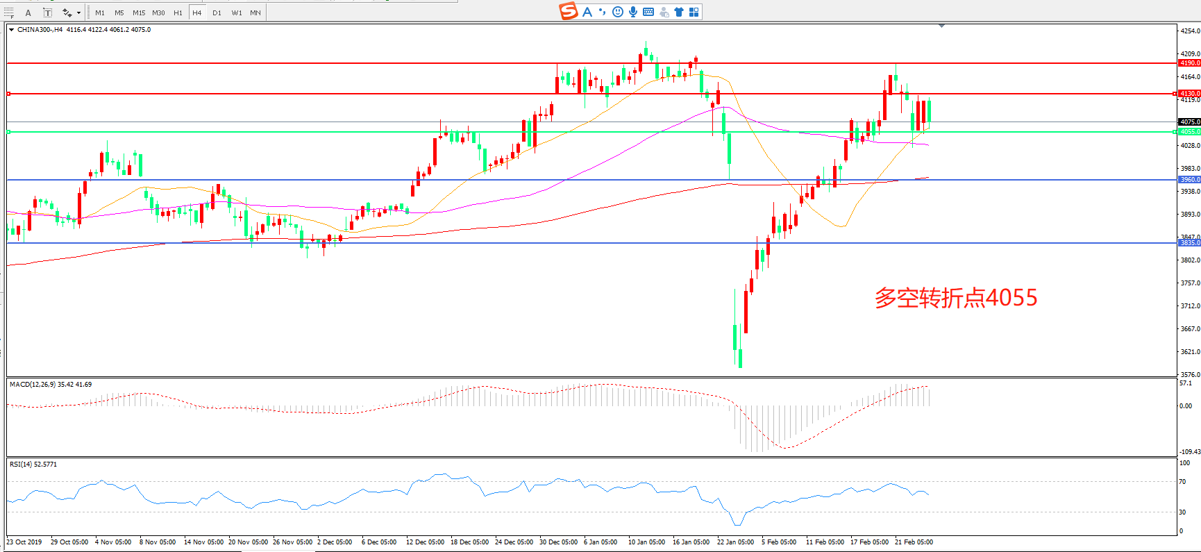 多空转折点:4055.00