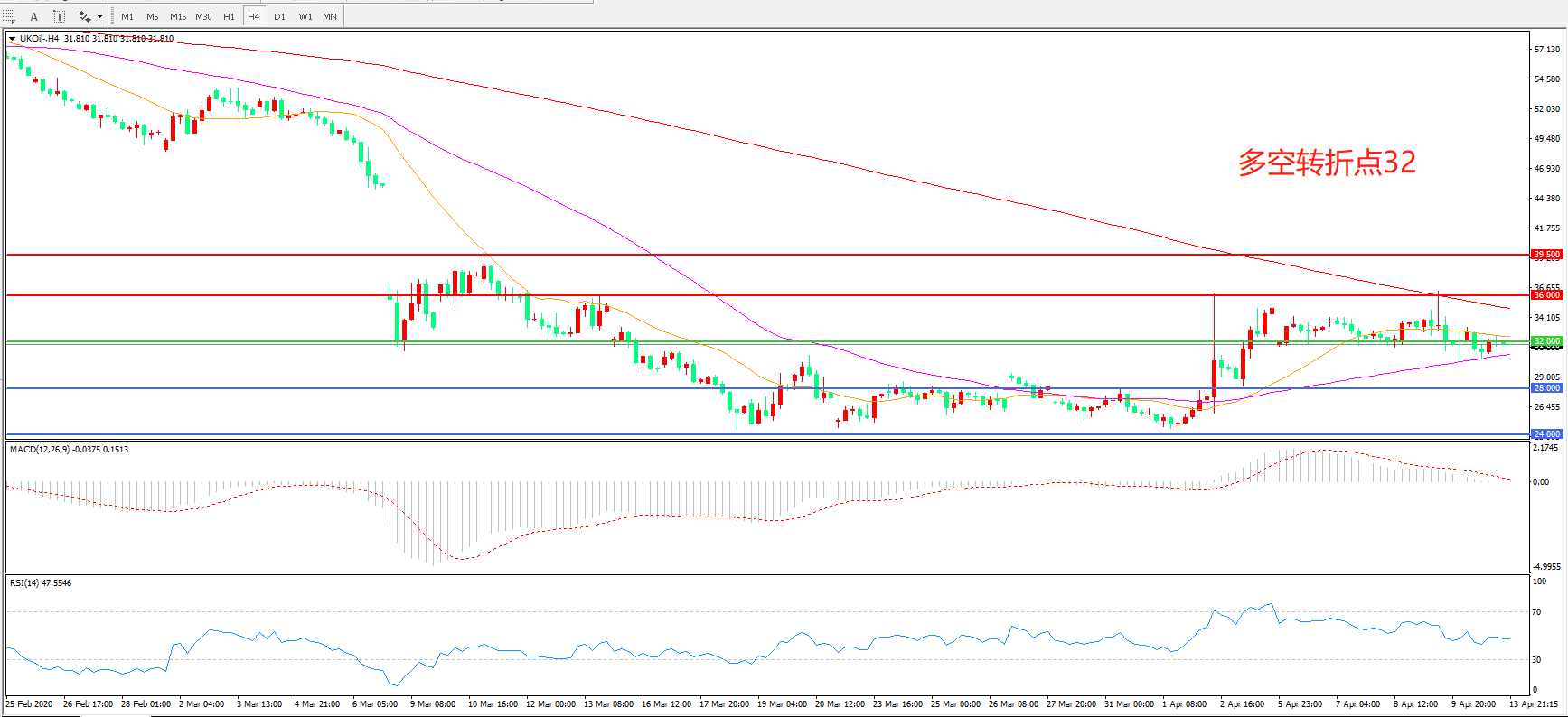 周一(4月13日),OPEC宣布欧佩克与非欧佩克产油国当天达成石油减产协议,布油一度涨超5%,但市场仍然担心减产幅度可能不足以抵消疫情对需求造成的打击,布伦特原油震荡回落,收报31.81美元/桶。
