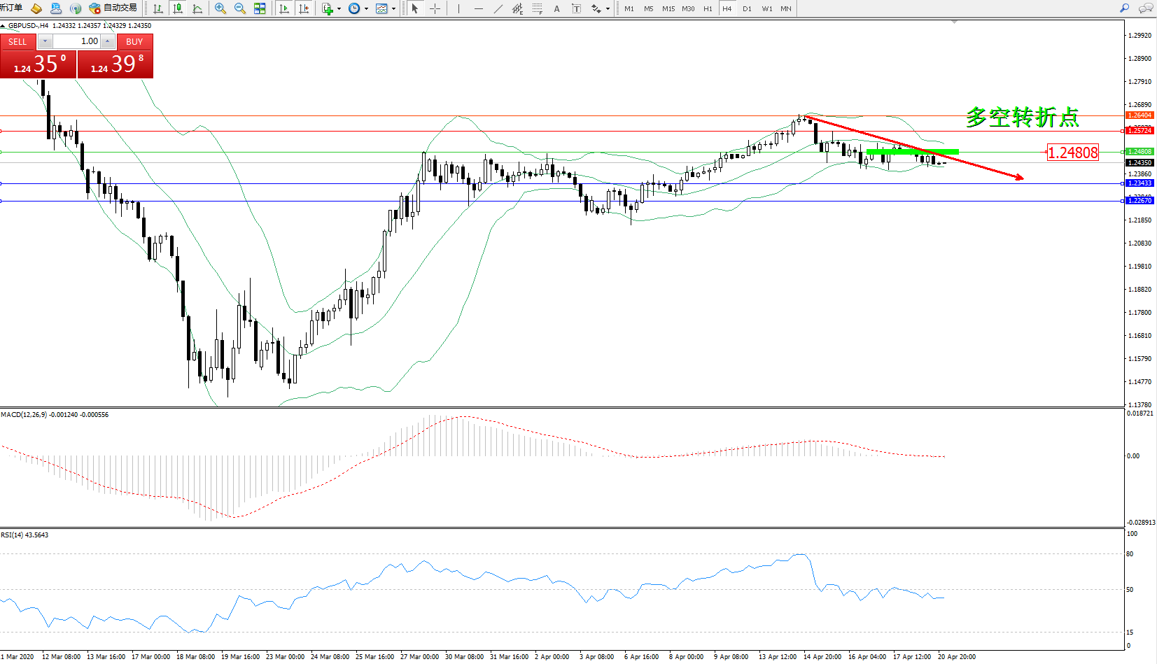 交易策略:1.24808下方看跌,目标1.234331.22670