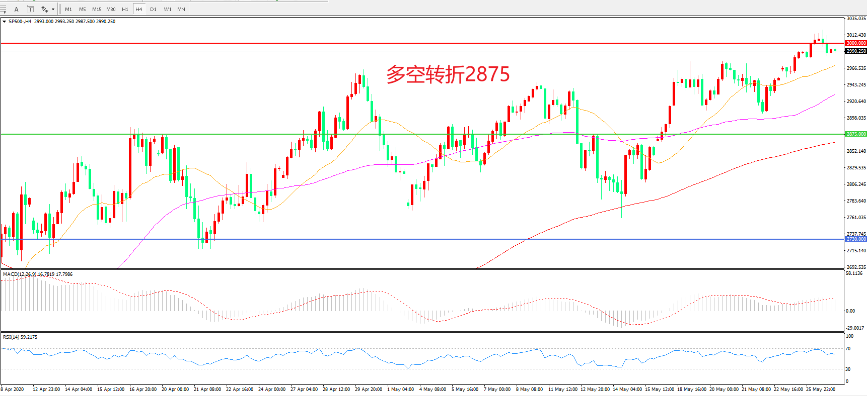 周二(5月26日),三大指数集体高开,标普500指数冲高回落,收报2990.75点。消息面来看,投资者期盼经济活动重启,再加上新冠疫苗的最新消息进展,都刺激了风险情绪,值得一说的是,瑞幸咖啡的股价也作妖了,瑞幸咖啡昨日涨超70%,上周,瑞幸咖啡发布公告称,收到纳斯达克交易所的退市通知,将举行听证会希望继续保住上市公司资格。