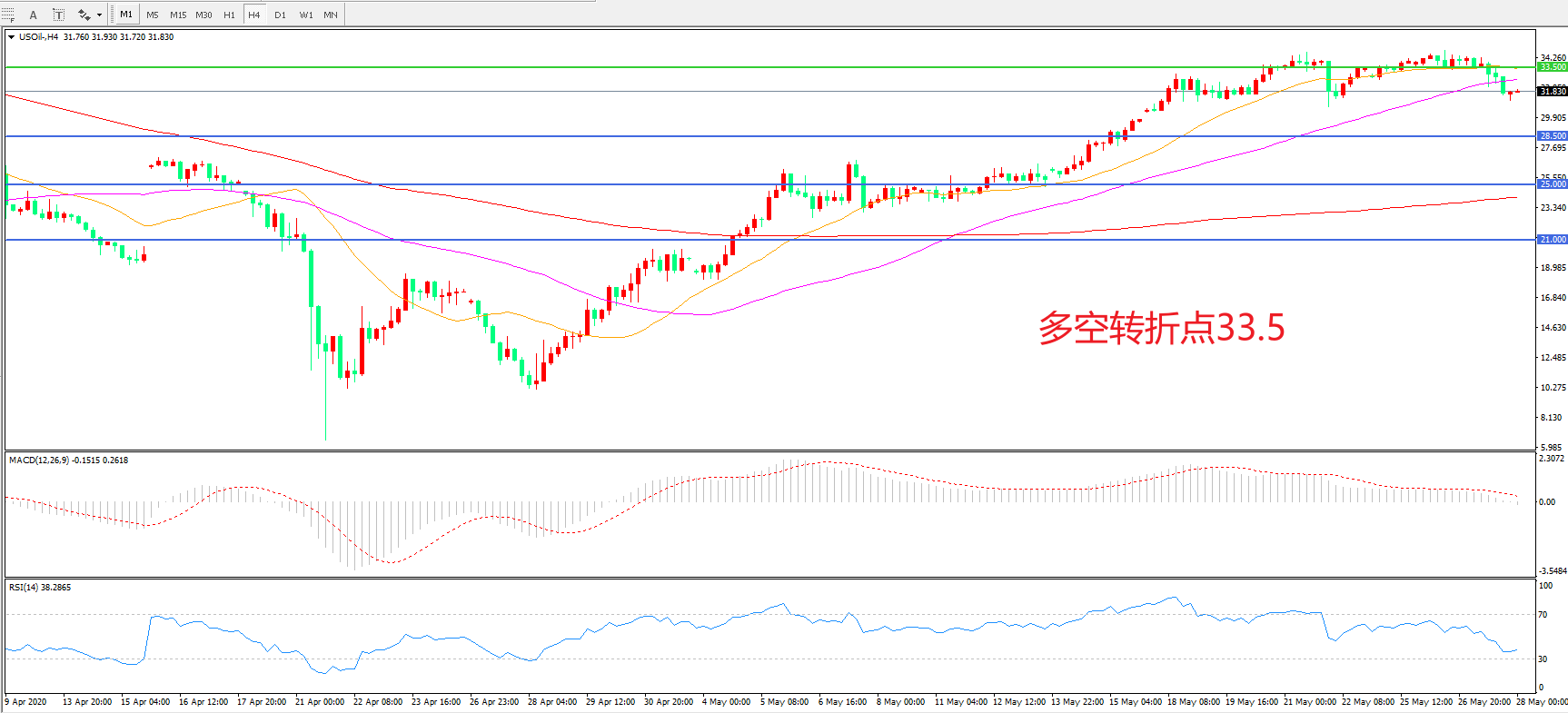 周三(5月27日),俄罗斯表示支持从7月份开始放松减产、中美关系对抗意味趋浓造成市场避险情绪回升,美国WTI原油震荡下行,收报31.54美元/桶。昨日,加拿大法院裁定孟晚舟“双重犯罪”成立,孟晚舟未能获释,从国安法争端到孟晚舟事件发酵,中美之间的紧张氛围让世界的未来充满了不确定性。