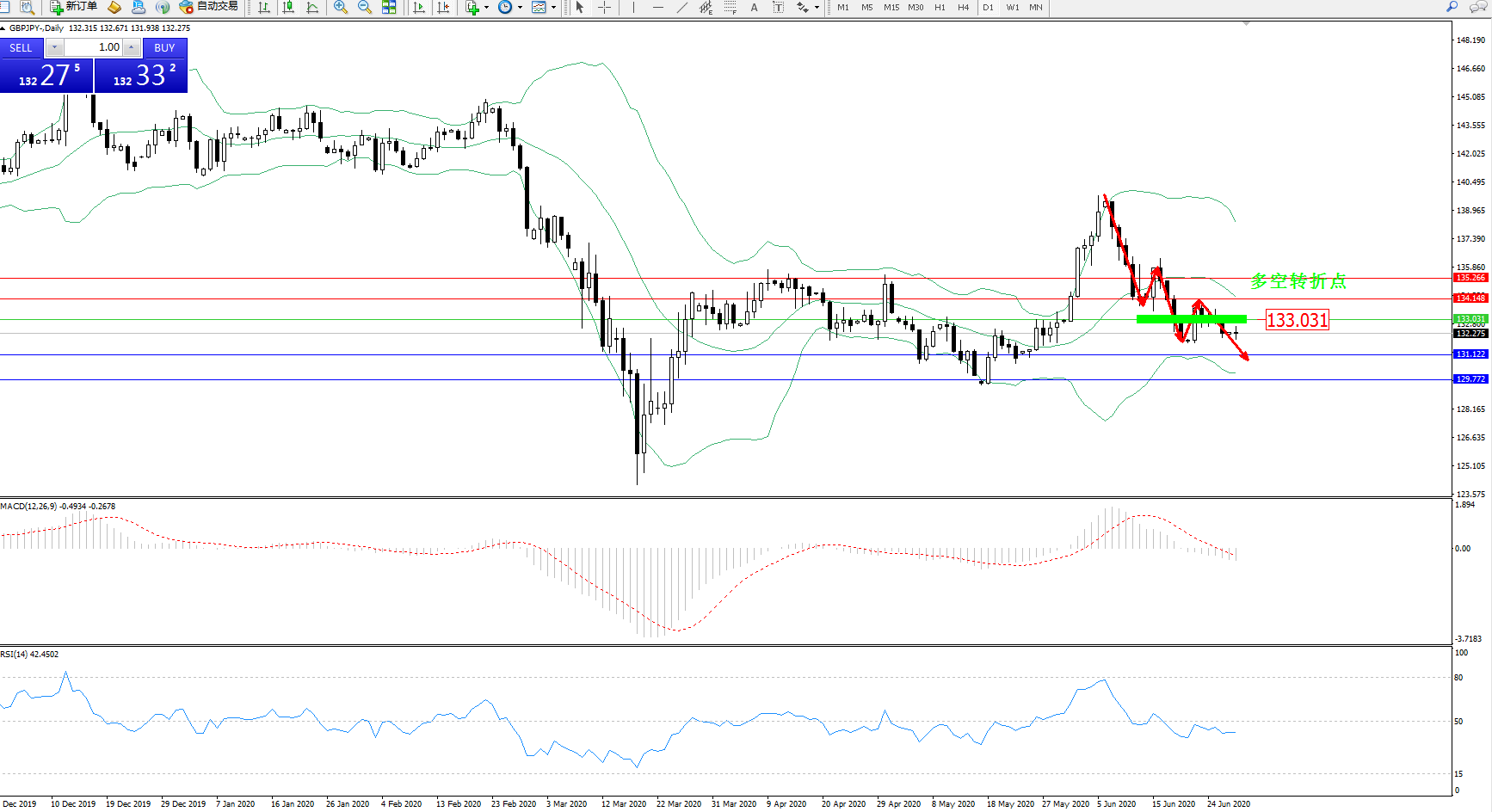 英镑兑日圆弱势纠结于132.341附近徘徊,首相约翰逊承诺要在医院和基础设施项目上投入大笔资金,以恢复受新冠疫情打击的英国经济,预计约翰逊将在今日公布支出计划。约翰逊在新冠病毒全球大流行引发经济滑坡的背景下,做出了支出承诺,这使英经济短暂得到了提振,英国脱欧预计仍将给经济带来压力,加上围绕疫情的不确定性,因此政府通过支出提供的任何支持肯定都会受到投资者的欢迎。英国工业联盟(CBI)周日表示,受新冠疫情影响,英国4-6月民间领域经济活动降幅创纪录,但有迹象表明下滑已触底。官方数据显示,英国4月经济产出创纪录下滑20%,周日的数据则显示整季出现巨大降幅。衡量之前三个月经济活动的月度增长指标,6月从5月的负63降至负71,为2003年开始调查以来的最低。