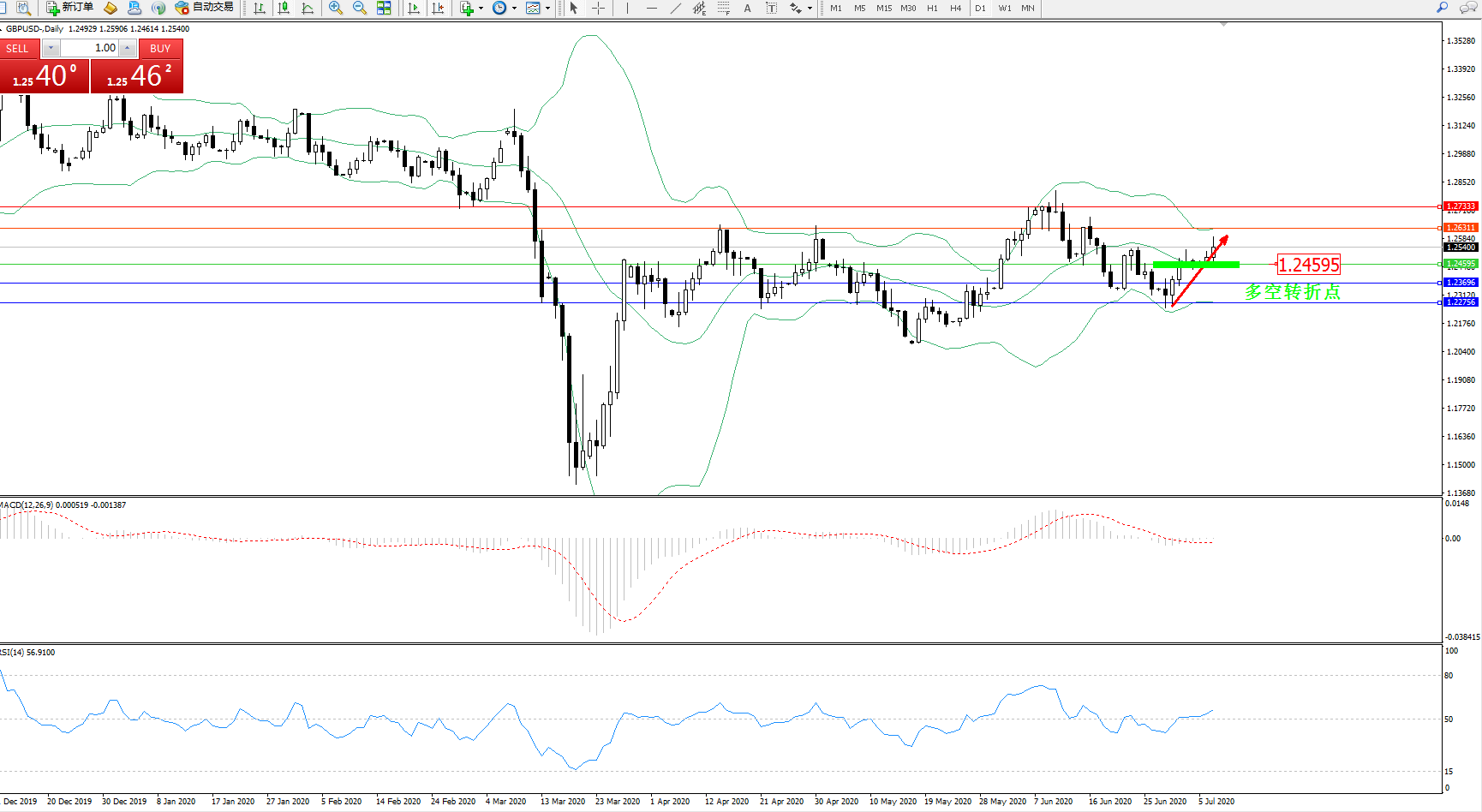 交易策略:1.24595上方看涨,目标1.26311、1.27333