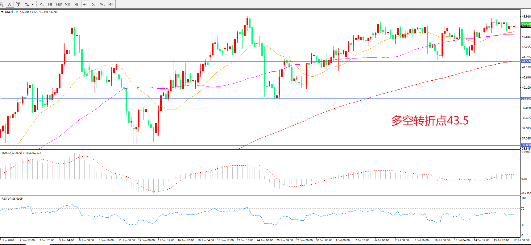 多空转折点:43.50