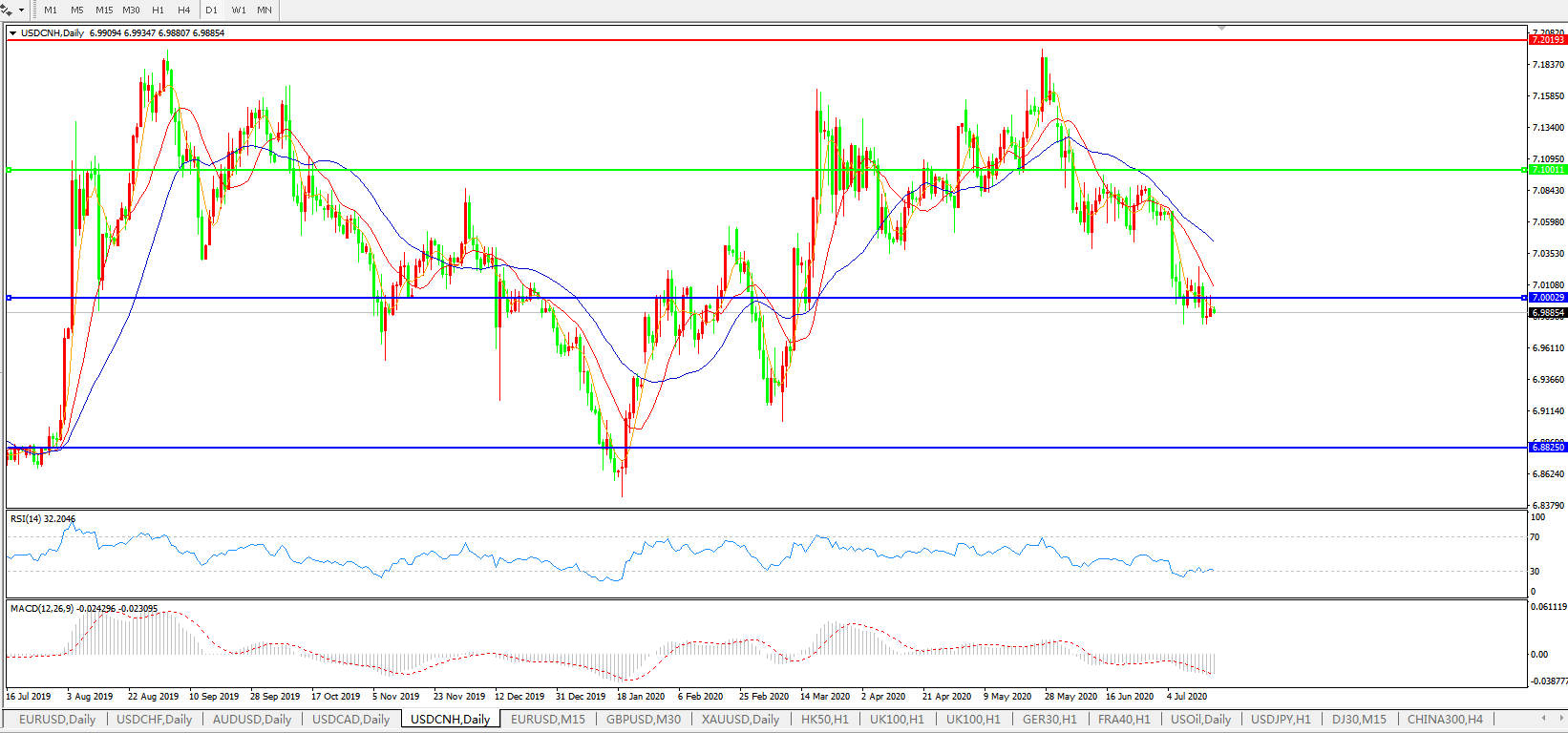 交易策略: 在7.1000之下,看跌,目标价位为7.0000,然后为6.8820。