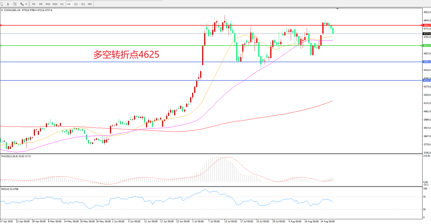 多空转折点:4628.00