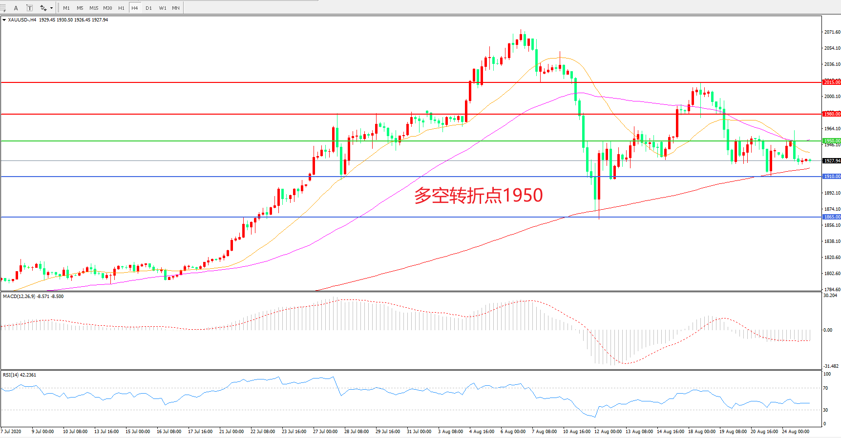 交易策略: 在1950.00之下看跌,目标1910.00 1865.00