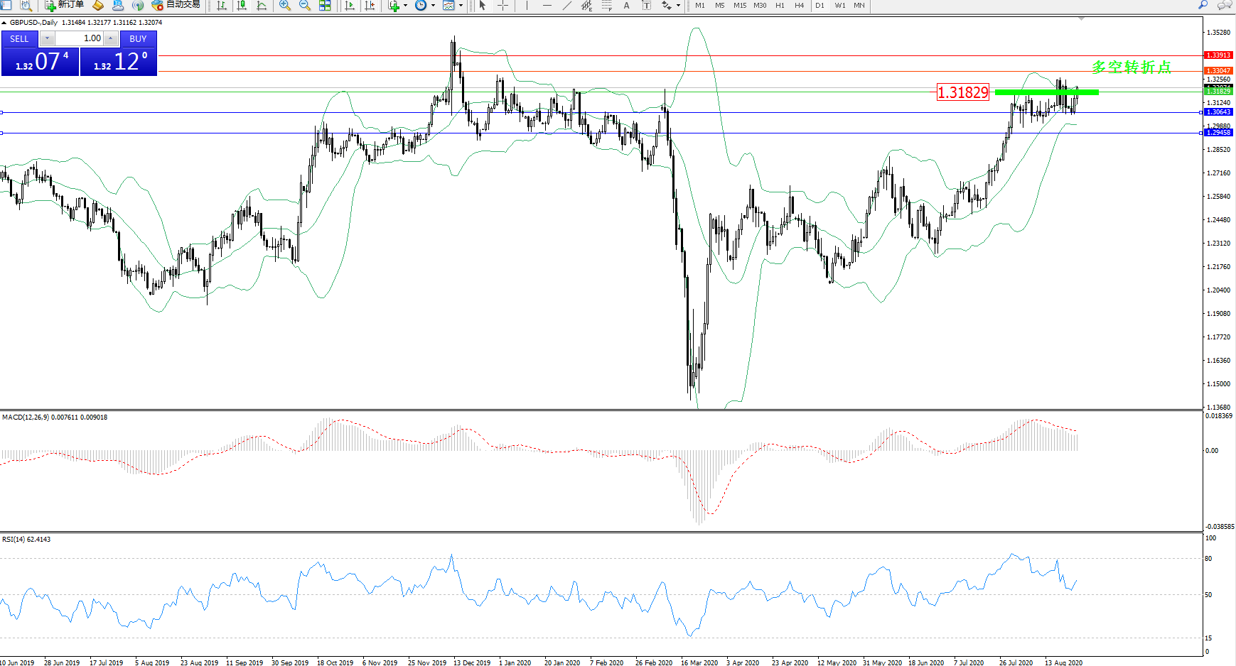 交易策略:1.31829上方看涨,目标1.33047、1.33913