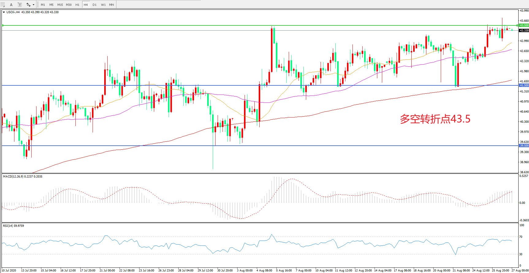 交易策略:在43.50之上看涨,目标46.00 49.50