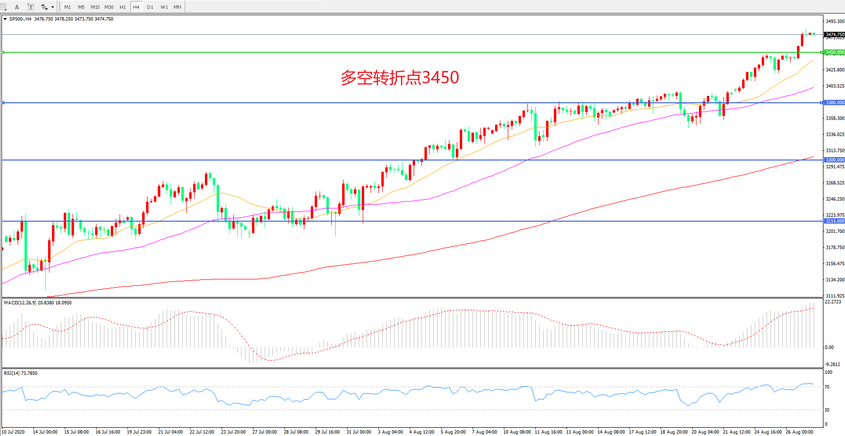 多空转折点:3450.00