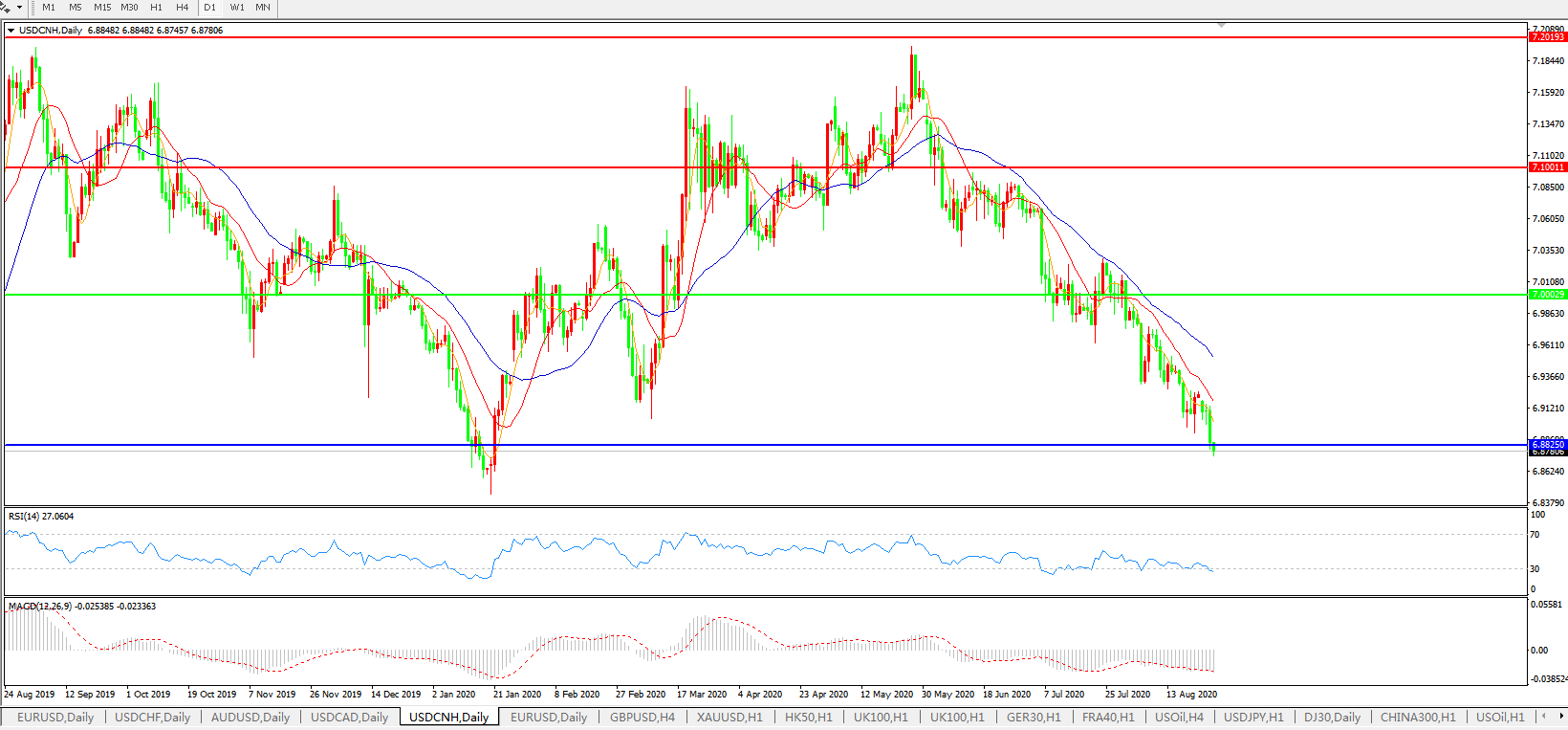 美元兑人民币USDCNH    日线图: