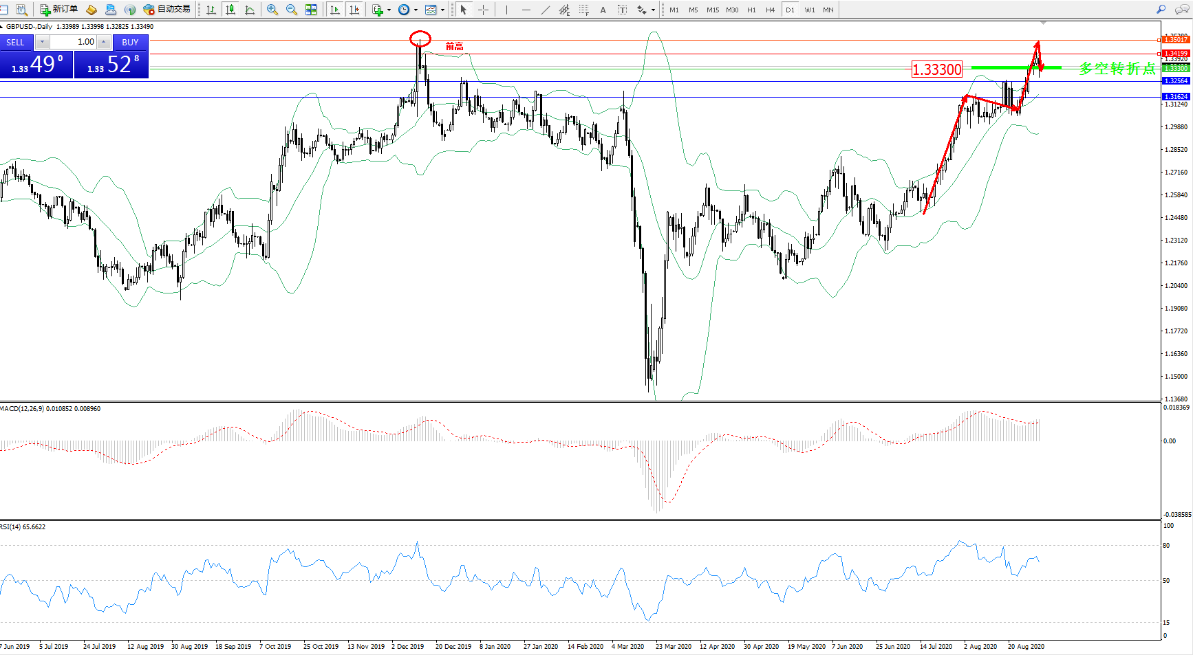 交易策略:1.33300上方看涨,目标1.34199、1.35017