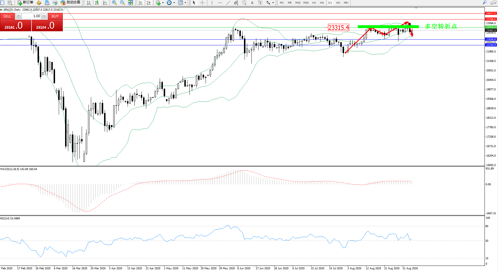 日经225指数9月4日(周五)收盘下跌279.03点,跌幅1.19%,报23186.50点。受隔夜美股暴跌影响,市场风险偏好情绪转为谨慎,风险资产有所承压,同时日内亚洲股市也纷纷下跌,日本自民党官员:日本执政党领导人竞选候选人将于9月12日在日本新闻俱乐部举行公开辩论;安倍首相上周五宣布因健康问题辞职。但他标志性的经济战略——一系列被称为“安倍经济学”的刺激政策——很可能会延续下去,因为他的亲密助手、内阁官房长官菅义伟已成为下任日本首相的热门人选。菅义伟曾表示,他将“维持并推进”安倍经济学。“安倍经济学”涉及大规模货币政策放松、财政支出和结构性改革。但分析人士称,即使安倍的反对者上台,疫情也没有给政府留下什么空间做出重大政策改变。日本首相安倍晋三卸任之际,还有许多未完成的任务来重振世界第三大经济体,这要留给他的继任者来收拾残局。新首相面临的问题包括如何降低日本的公共债务、解决官僚主义过度以及提高劳动生产力。