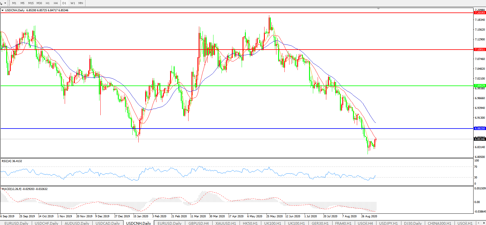 人民币兑美元即期周二收盘微跌,交易员称,近期美元跌势放缓,人民币在惯性上升至200周均线附近后续涨动能亦下降;他们并指出,随着美国大选临近,贸易大国在各领域的摩擦恐会加剧,虽然中期大方向美元仍可能下行,但欧洲央行宽松预期仍可能带动欧元回落,美元也可能重新反弹; 全球汇市方面,美元周二持稳,投资者权衡欧洲央行本周稍晚若转向更宽松立场是否会打击欧元,英镑整理因脱欧不确定性引发的跌势;大多数分析师预期欧洲央行将按兵不动,但关注央行有关通胀预期的讯息以及其是否会对欧元的强势感到担忧; 澳洲联邦银行(CBA)汇率分析师Kim Mundy称,“我们认为,本周余下时间美元可能进一步走高,因为欧洲央行可能转向更偏鸽派的政策”
