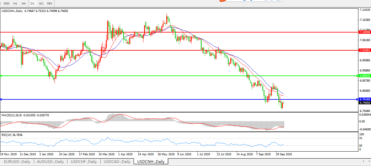 美元兑人民币USDCNH    日线图: