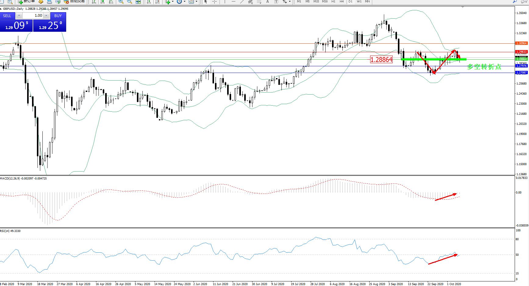 备选策略:1.28864上方看涨,目标1.29833、1.30964