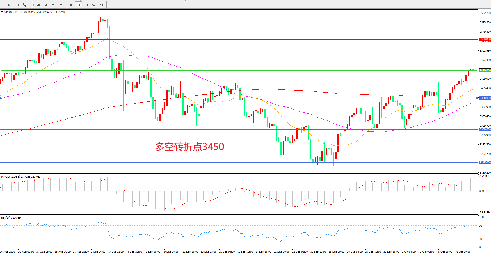 多空转折点:3450.00